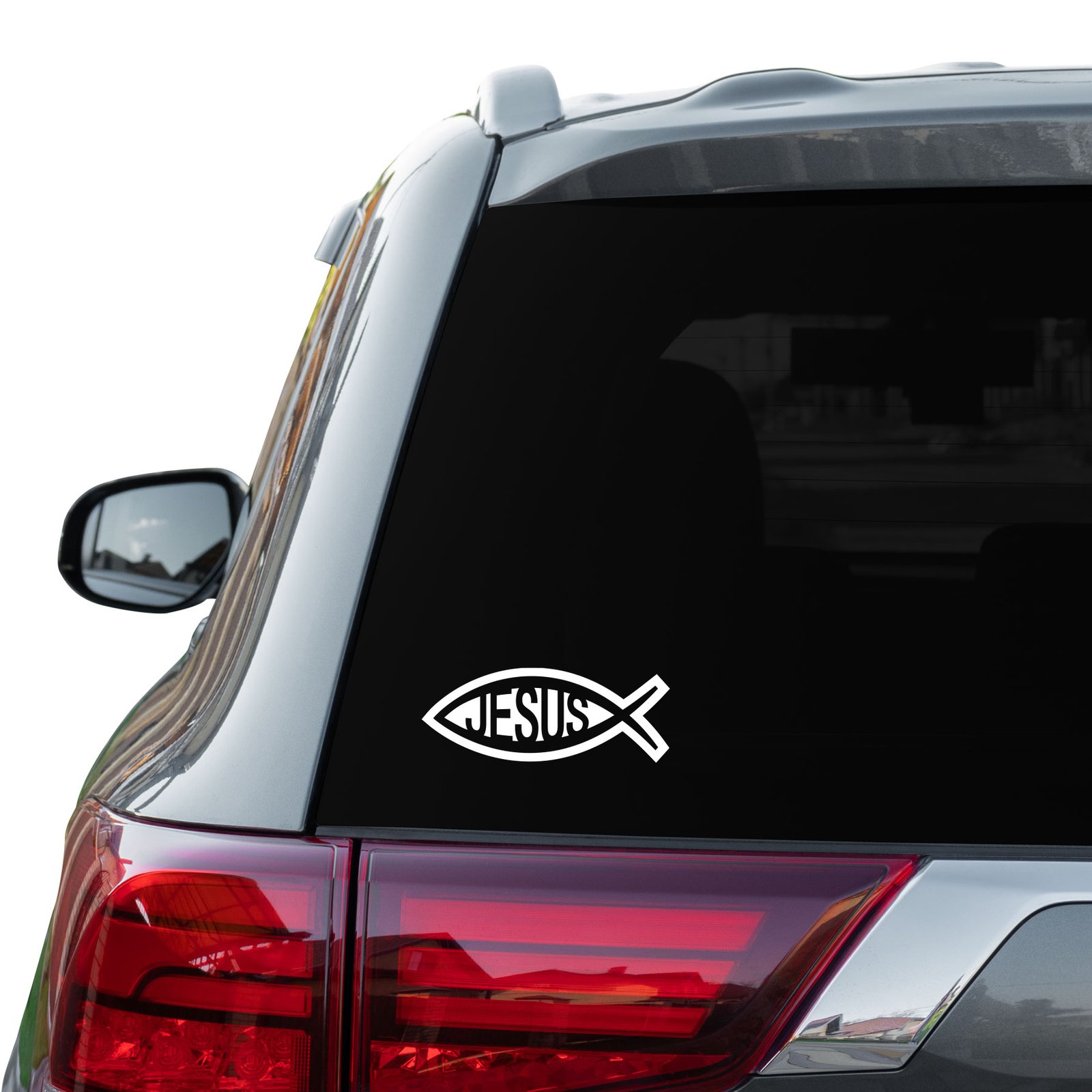 Vinyl cut-out stickers from premium vehicle vinyl that will last years in the heat and cold. A perfect display of faith for your vehicle’s window.