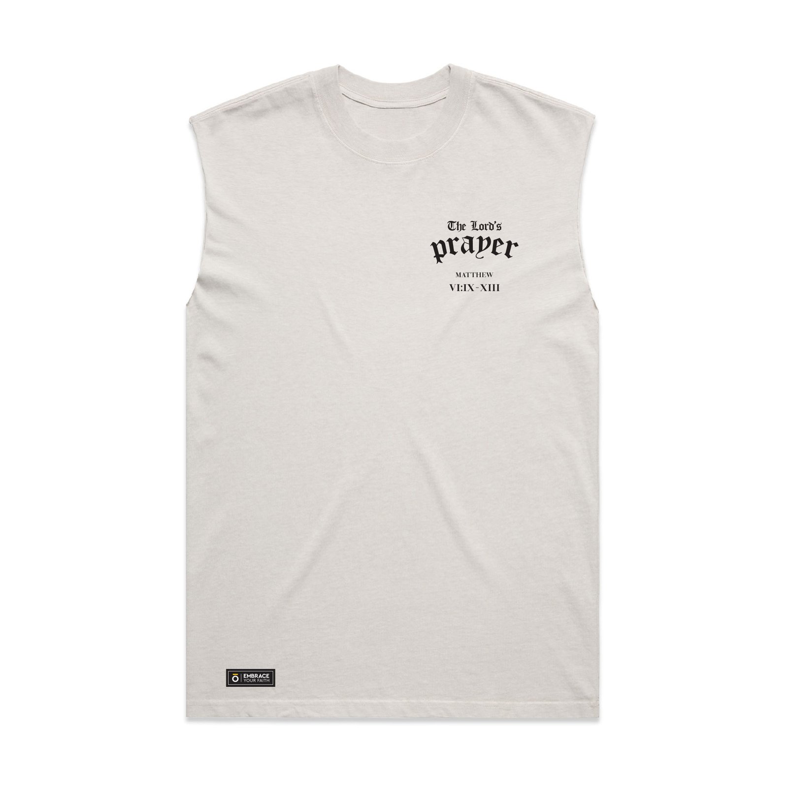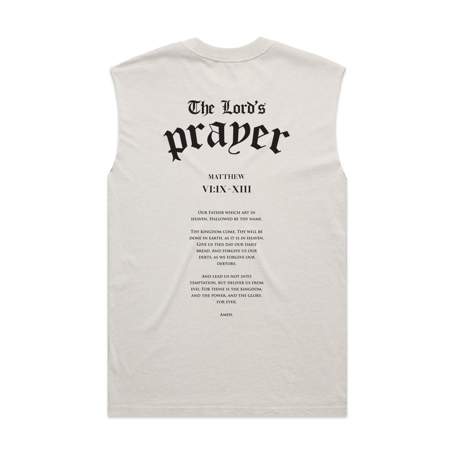 Bold devotion meets timeless scripture. The reference to Matthew VI:IX–XIII, anchors the prayer in its biblical source offering a clear and respectful presentation of the words spoken by Christ himself. Perfect for those who wear their prayers boldly and faithfully.