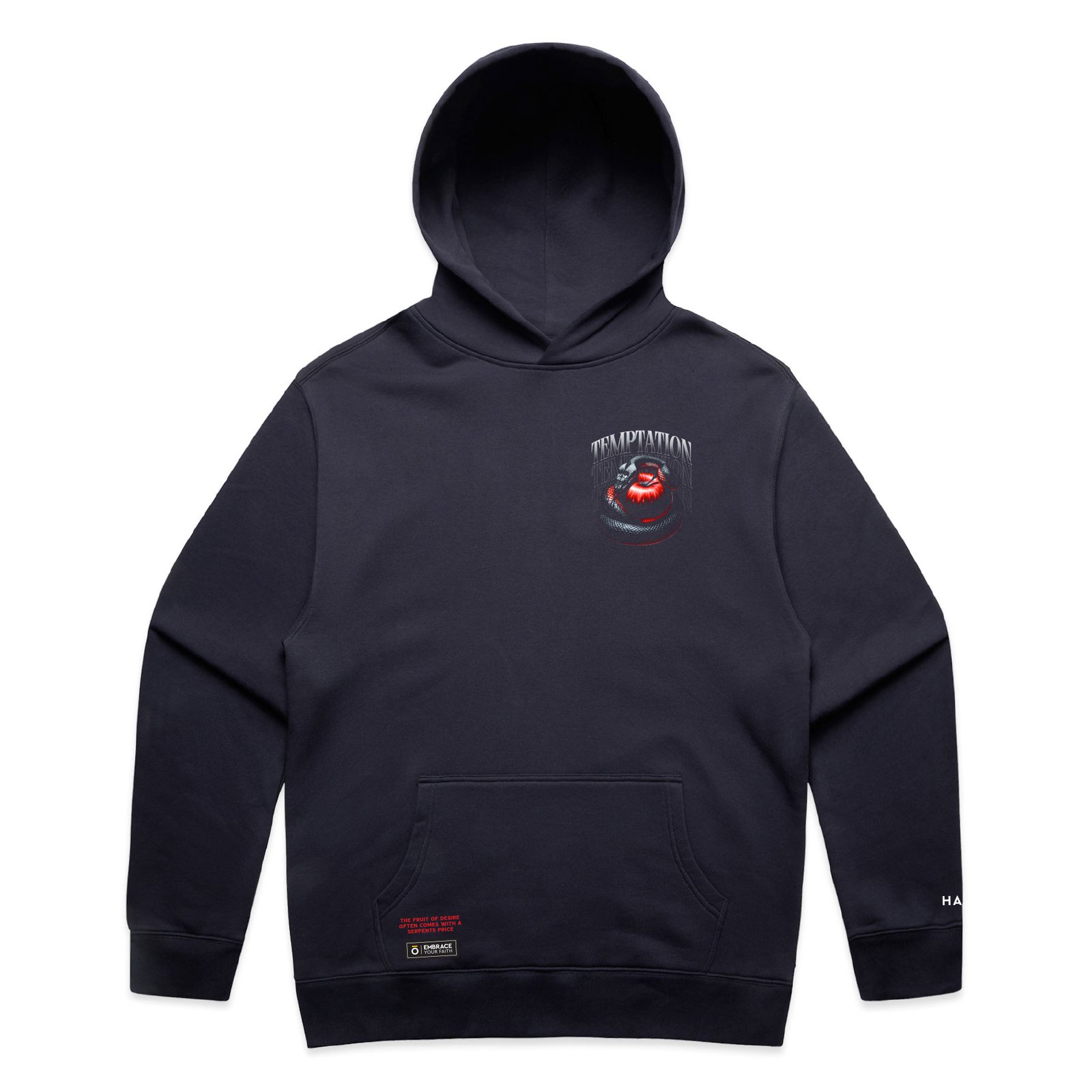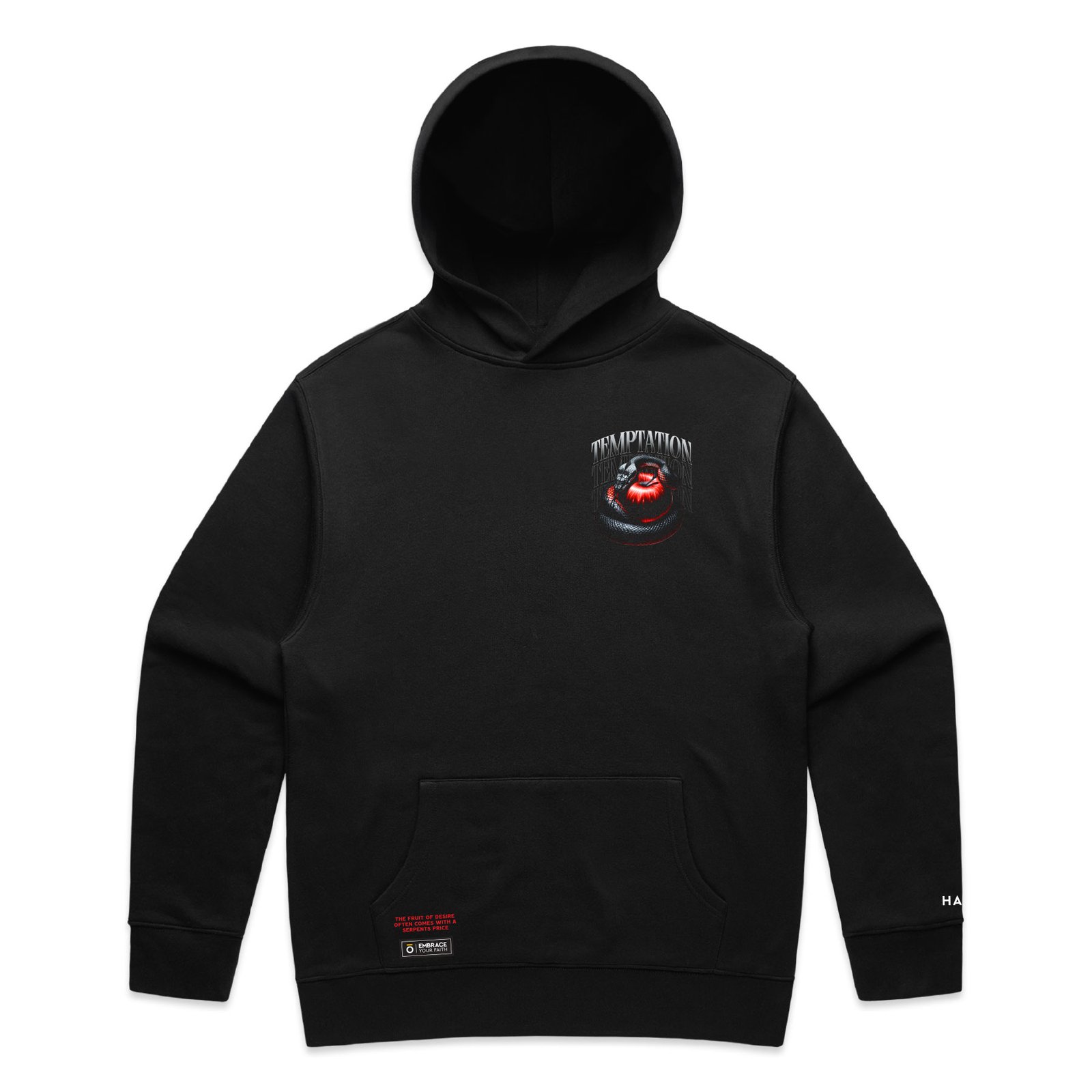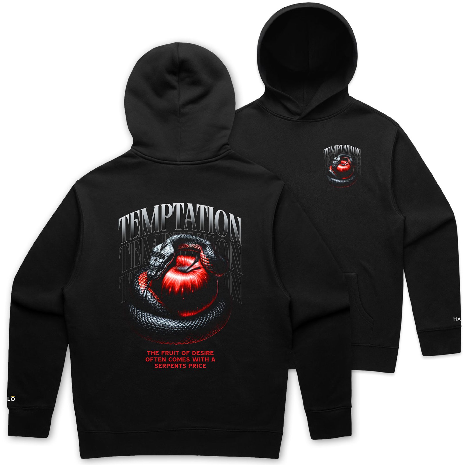 A striking visual of the serpent and the forbidden fruit — a bold statement on the danger of desire. Temptation isn’t always loud. Sometimes, it looks sweet.